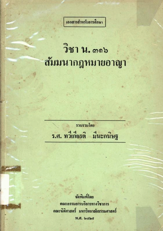 National Assembly Library of Thailand | Law Book collection | KS 11 ท189อ 2529 (เรียกดูชั้นหนังสือ(เปิดด้านล่าง)) | ฉ. 2 | พร้อมให้บริการ | 3961128193 |