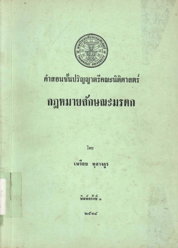 คำสอนชั้นปริญญาตรีคณะนิติศาสตร์ กฎหมายลักษณะมรดก