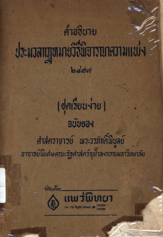 National Assembly Library of Thailand | Law Book collection | KT 63 ว233ค 2515 (เรียกดูชั้นหนังสือ(เปิดด้านล่าง)) | พร้อมให้บริการ | 3961128867 |