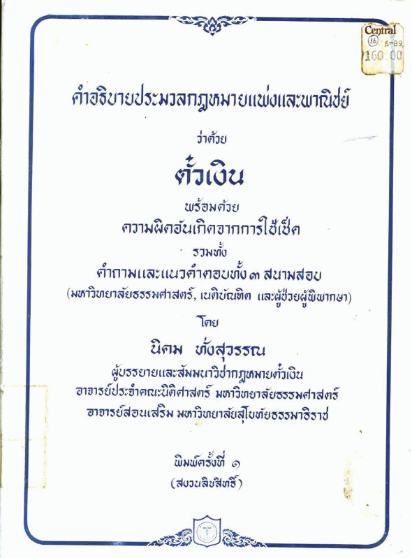 National Assembly Library of Thailand | Law Book collection | KS 48.1 น553ค 2531 (เรียกดูชั้นหนังสือ(เปิดด้านล่าง)) | ฉ. 1 | พร้อมให้บริการ | 3961128321 | |