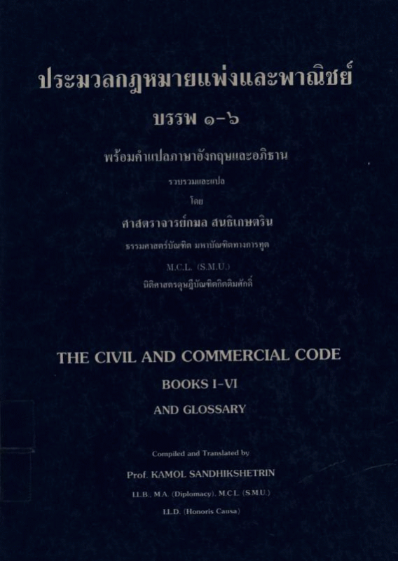 ประมวลกฎหมายแพ่งและพาณิชย์ บรรพ 1-6 พร้อมทั้งคำแปลภาษาอังกฤษและอภิธาน