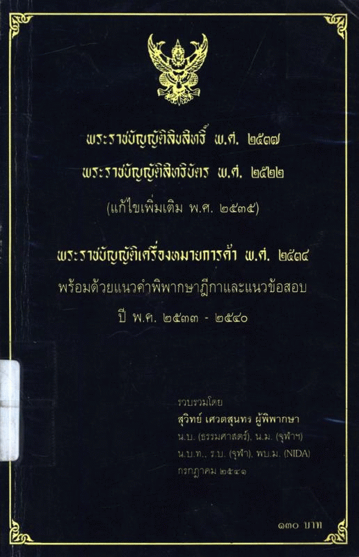 พระราชบัญญัติลิขสิทธิ์ พ.ศ.2537 พระราชบัญญัติสิทธิบัตร พ.ศ.2522 (แก้ไขเพิ่มเติม พ.ศ.2535) พระราชบัญญัติเครื่องหมายการค้า พ.ศ.2534 พร้อมด้วยแนวคำพิพากษาฎีกาและแนวข้อสอบ ปี พ.ศ. 2533-2540