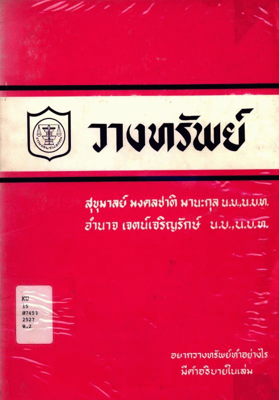 National Assembly Library of Thailand | Law Book collection | KU 15 ส745ว 2527 (เรียกดูชั้นหนังสือ(เปิดด้านล่าง)) | ฉ. 1 | พร้อมให้บริการ | 3961126478 |