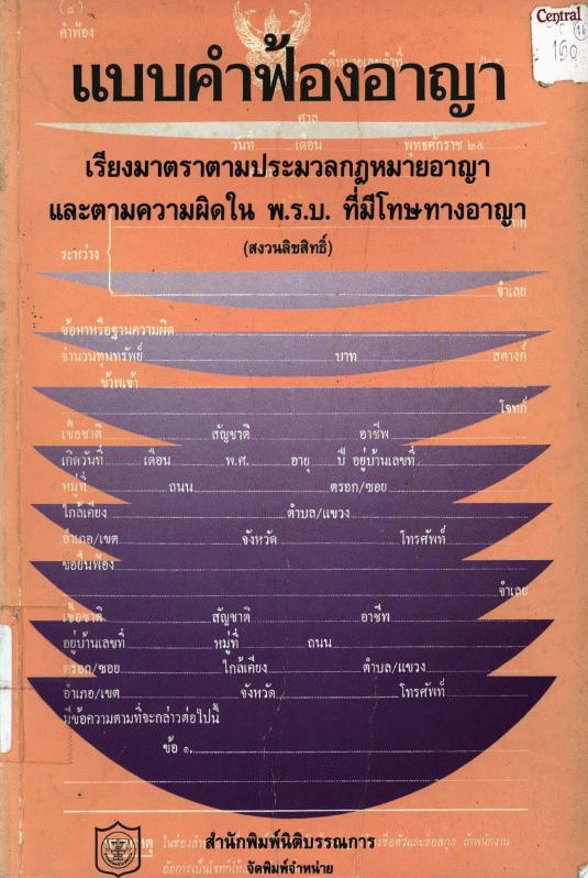 แบบคำฟ้องอาญา เรียงมาตราตามประมวลกฎหมายอาญาและตามความผิดใน พ.ร.บ. ที่มีโทษทางอาญา / นิติบรรณการ.
