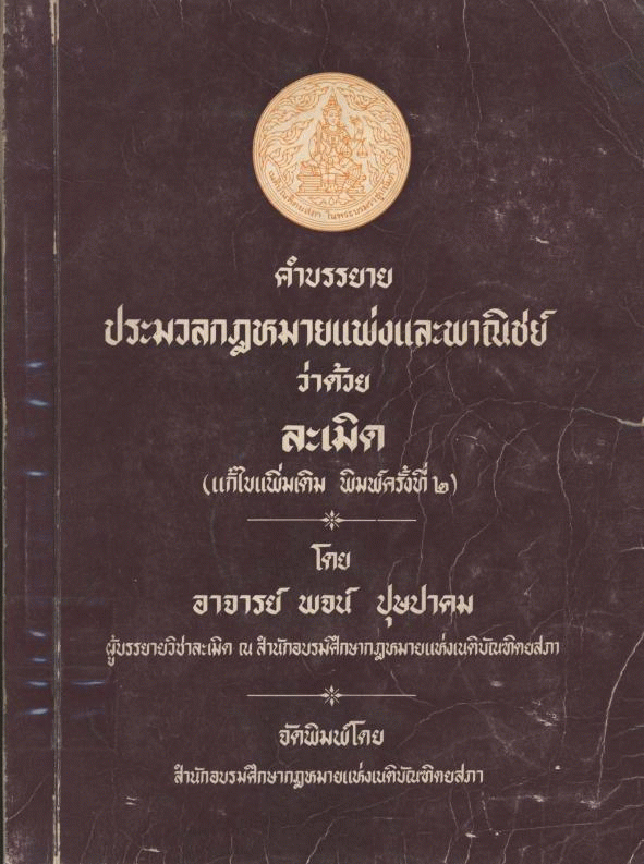 National Assembly Library of Thailand | Law Book collection | KS 44.3 พ168ค 2523 (เรียกดูชั้นหนังสือ(เปิดด้านล่าง)) | พร้อมให้บริการ | 3961138829 |