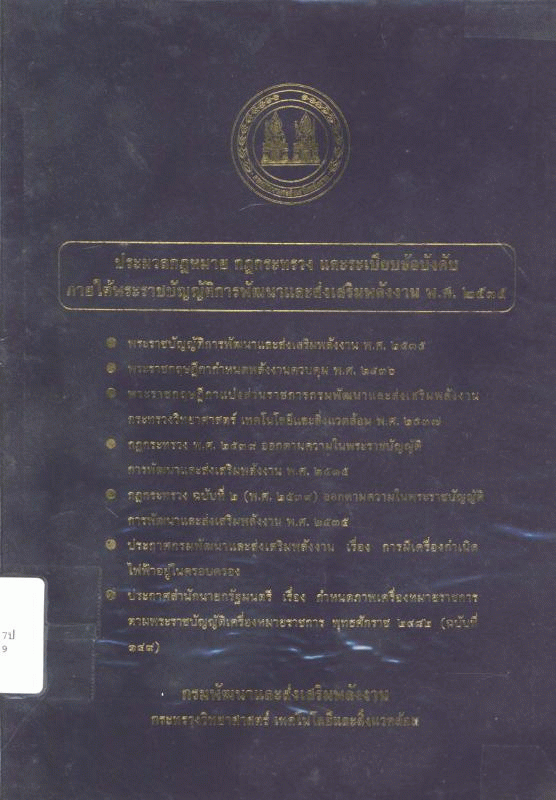 ประมวลกฎหมาย กฎกระทรวง และระเบียบข้อบังคับ ภายใต้พระราชบัญญัติการพัฒนาและส่งเสริมพลังงาน พ.ศ.2535