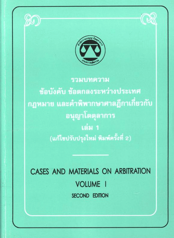 รวมบทความ ข้อบังคับ ข้อตกลงระหว่างประเทศ กฎหมาย และคำพิพากษาศาลฎีกาเกี่ยวกับอนุญาโตตุลาการ เล่ม 1 [2nd]