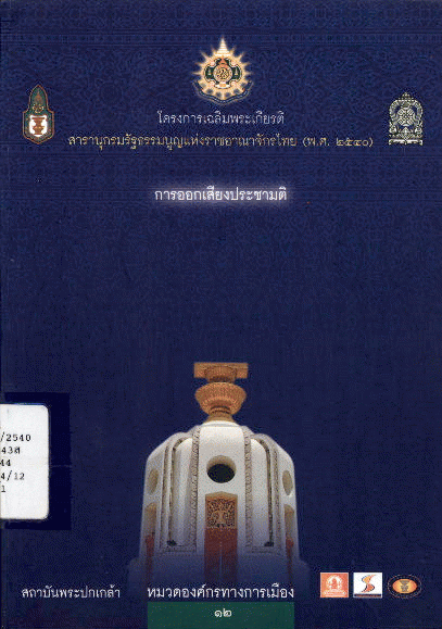 TextLanguage: Thai Publisher: กรุงเทพฯ : สถาบันพระปกเกล้า, 2544Description: 45 หน้า ; 21 ซมISBN: - 9740083463