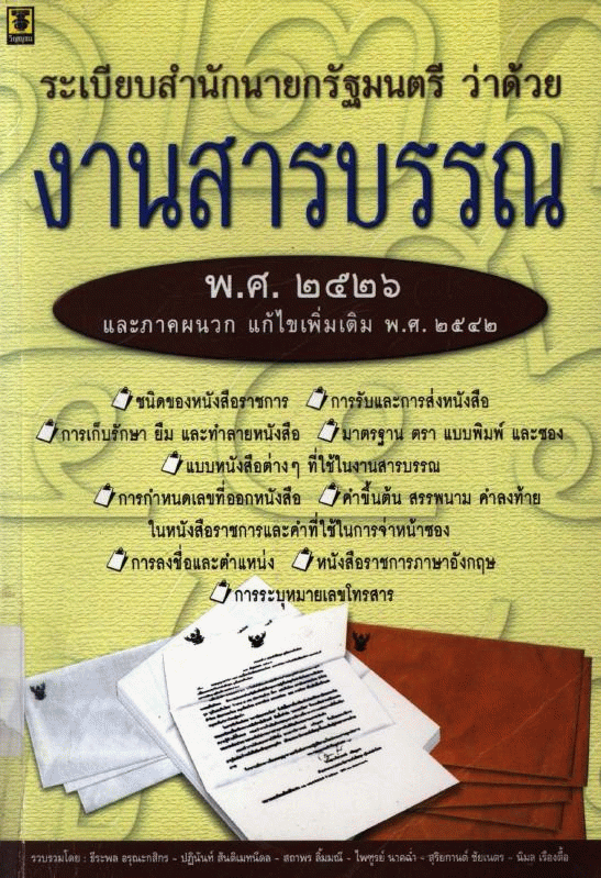 ระเบียบสำนักนายกรัฐมนตรีว่าด้วยงานสารบรรณ พ.ศ.2526 และภาคผนวก แก้ไขเพิ่มเติม พ.ศ.2542