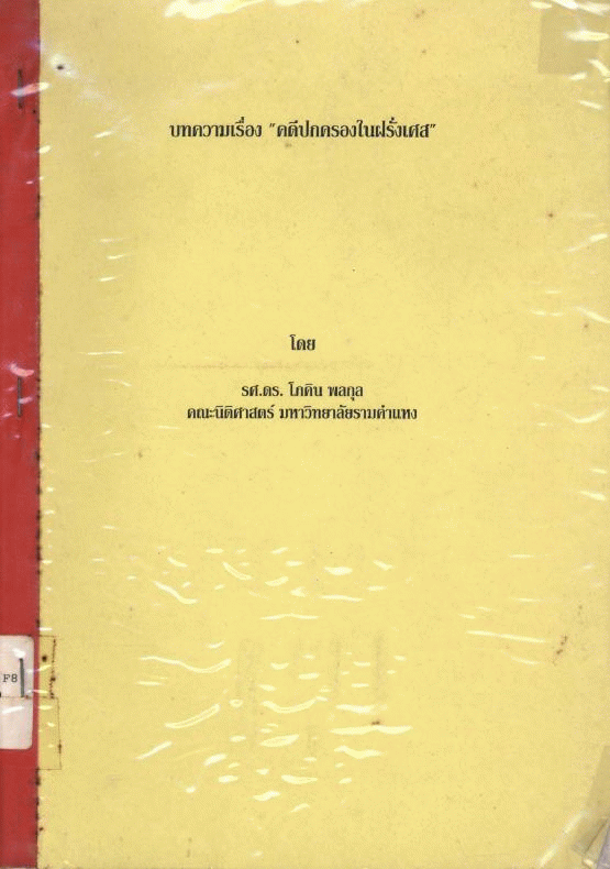 National Assembly Library of Thailand | Law Book collection | KE 160.F8 ภ919ค 2532 (เรียกดูชั้นหนังสือ(เปิดด้านล่าง)) | พร้อมให้บริการ | 3961105043 |