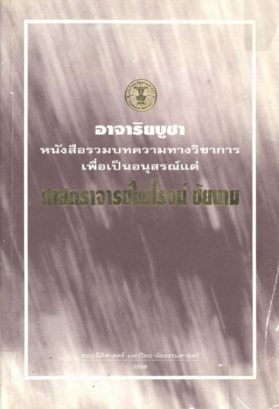 อาจาริยบูชา หนังสือรวมบทความทางวิชาการเพื่อเป็นอนุสรณ์แด่ศาสตราจารย์ไพโรจน์ ชัยนาม.