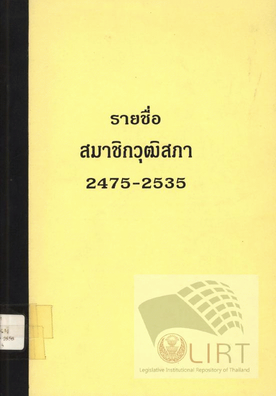 National Assembly Library of Thailand | Parliamentary Publications Collection | Parliamentary Publications Shelves | สว 01 4.2 32831 2475-2535 (เรียกดูชั้นหนังสือ(เปิดด้านล่าง)) | ฉ. 2 | พร้อมให้บริการ | 3961122935 | |