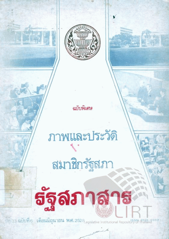 ภาพและประวัติสมาชิกรัฐสภา พ.ศ. 2528 : รัฐสภาสาร ฉบับพิเศษ ปีที่ 33 ฉบับที่ 6 เดือนมิถุนายน 2528 / ศูนย์บริการเอกสารและค้นคว้า สำนักงานเลขาธิการรัฐสภา.