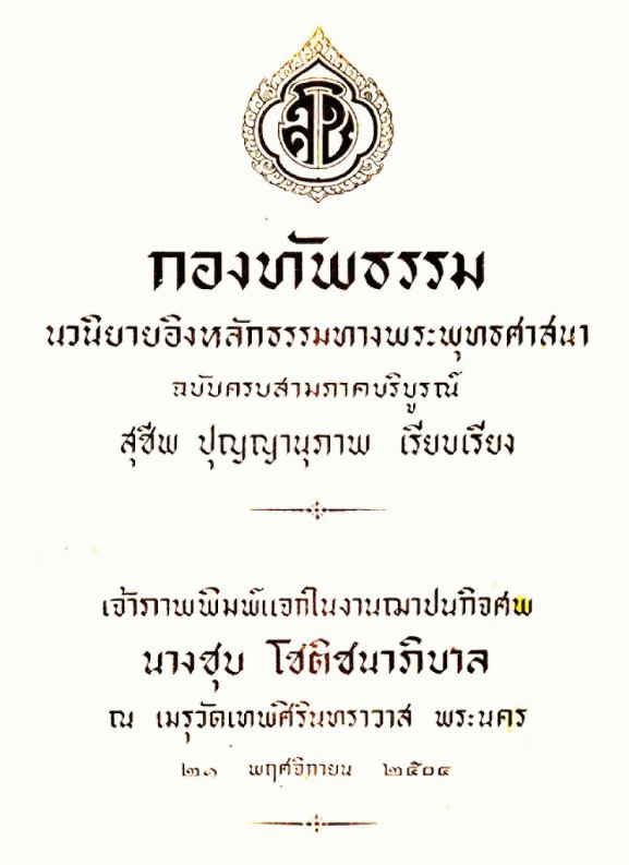 กองทัพธรรม นวนิยายอิงหลักธรรมทางพระพุทธศาสนา ฉบับครบสามภาคบริการบูรณ์ / สุชีพ ปุญญานุภาพ, เรียบเรียง.