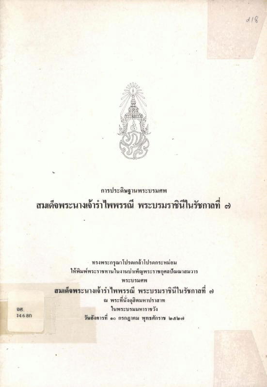 National Assembly Library of Thailand | Cremation collection | Cremation corner | อศ ร468ก (เรียกดูชั้นหนังสือ(เปิดด้านล่าง)) | พร้อมให้บริการ | 3961116442 |