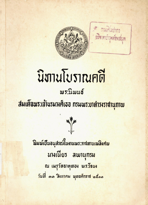 นิทานโบราณคดี / พระนิพนธ์ สมเด็จพระเจ้าบรมวงศ์เธอ กรมพระยาดำรงราชานุภาพ.