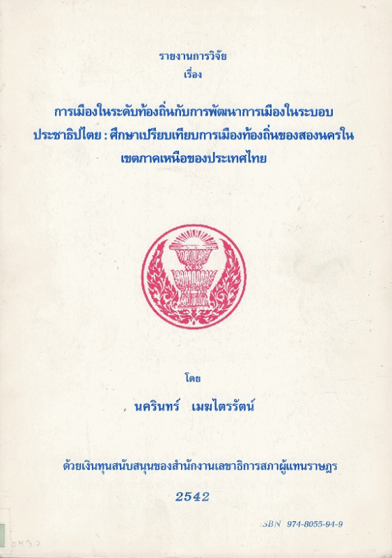 National Assembly Library of Thailand | Senate | Research & Theses shelves | ว JS 7406.C5.1 น131ร 2542 (เรียกดูชั้นหนังสือ(เปิดด้านล่าง)) | พร้อมให้บริการ | 0100008825001 | |