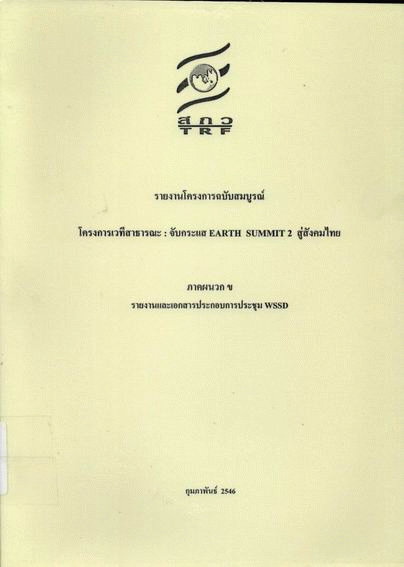 โครงการเวทีสาธารณะ : จับกระแส EARTH SUMMIT 2 สู่สังคมไทย ภาคผนวก ข รายงานและเอกสารประกอบการประชุม WSSD