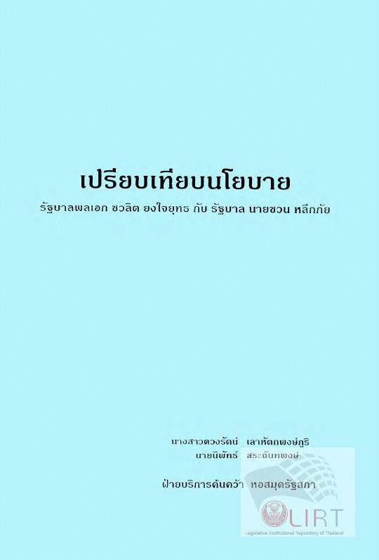 เปรียบเทียบนโยบายรัฐบาลพลเอกชวลิต ยงใจยุทธ กับรัฐบาลนายชวน หลีกภัย / หอสมุดรัฐสภา สำนักงานเลขาธิการสภาผู้แทนราษฎร.