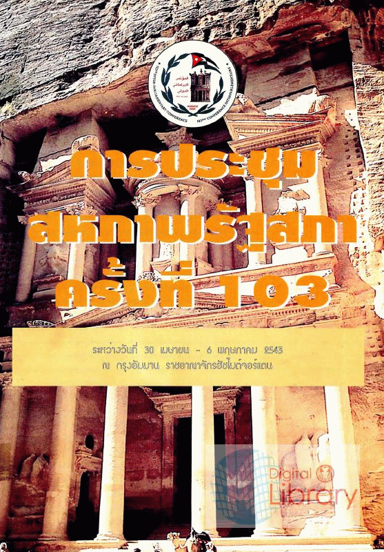 การประชุมสหภาพรัฐสภา ครั้งที่ 103 ระหว่างวันที่ 30 เมษายน - 6 พฤษภาคม 2543 ณ กรุงอัมมาน ราชอาณาจักรฮัชไมต์จอร์แดน / ฝ่ายสหภาพรัฐสภา กององค์การรัฐสภาระหว่างประเทศ สำนักงานเลขาธิการสภาผู้แทนราษฎร.