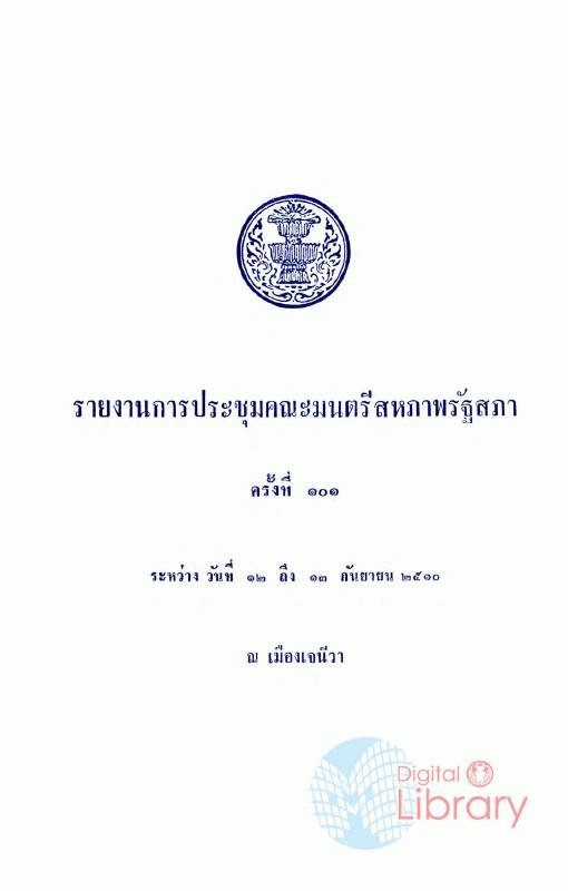 รายงานการประชุมคณะมนตรีสหภาพรัฐสภา ครั้งที่ 101 ระหว่างวันที่ 12 ถึง 13 กันยายน 2510 ณ เมืองเจนีวา / สำนักงานเลขาธิการรัฐสภา.