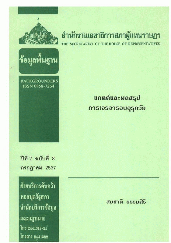 แกตต์และผลสรุปการเจรจารอบอุรุกวัย / หอสมุดรัฐสภา สำนักงานเลขาธิการสภาผู้แทนราษฎร.