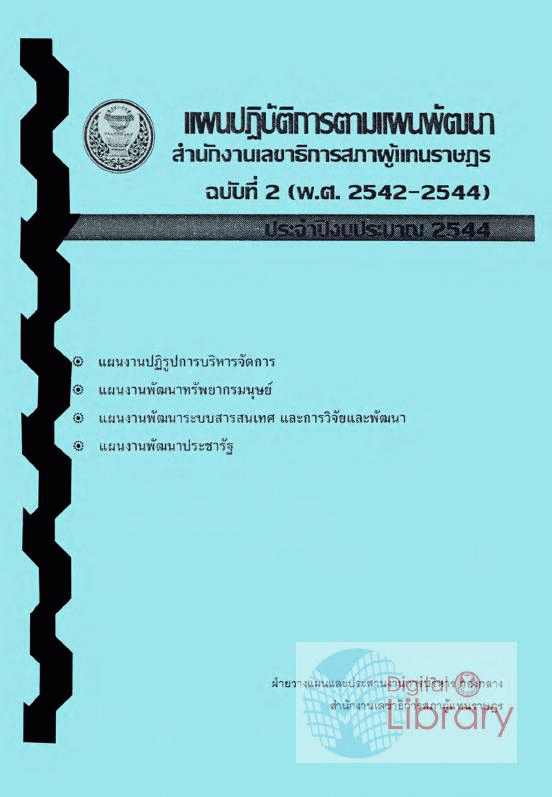 National Assembly Library of Thailand | Parliamentary Publications Collection | Parliamentary Publications Shelves | สผ 01 10.5 328.32 2544 (เรียกดูชั้นหนังสือ(เปิดด้านล่าง)) | พร้อมให้บริการ | 3961138715 |