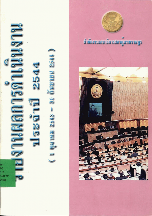 National Assembly Library of Thailand | Parliamentary Publications Collection | Parliamentary Publications Shelves | สผ 03 1.2 328.32 2544 (เรียกดูชั้นหนังสือ(เปิดด้านล่าง)) | ฉ. 1 | พร้อมให้บริการ | 3961142464 |