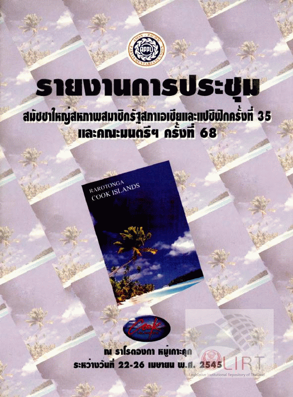 รายงานการประชุมสมัชชาใหญ่สหภาพสมาชิกรัฐสภาเอเชียและแปซิฟิก ครั้งที่ 35 และคณะมนตรีฯ ครั้งที่ 68 ณ ราโรตองกา หมู่เกาะคุก ระหว่างวันที่ 22-26 เมษายน พ.ศ. 2545 / กององค์การรัฐสภาระหว่างประเทศ สำนักงานเลขาธิการสภาผู้แทนราษฎร.