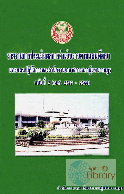 รายงานการประเมินผลการดำเนินงานตามแผนพัฒนา และแผนปฏิบัติการของสำนักงานเลขาธิการสภาผู้แทนราษฎร ฉบับที่ 2 (พ.ศ. 2542-2544) / กองกลาง สำนักงานเลขาธิการสภาผู้แทนราษฎร.