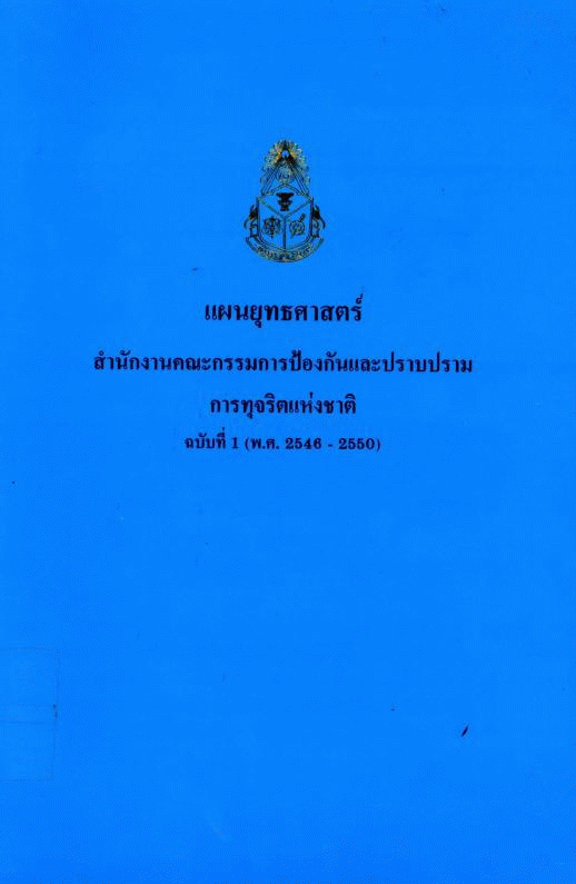 แผนยุทธศาสตร์สำนักงานคณะกรรมการป้องกันและปราบปรามการทุจริตแห่งชาติ ฉบับที่ 1 (พ.ศ. 2546-2550) / สำนักงานคณะกรรมการป้องกันและปราบปรามการทุจริตแห่งชาติ.