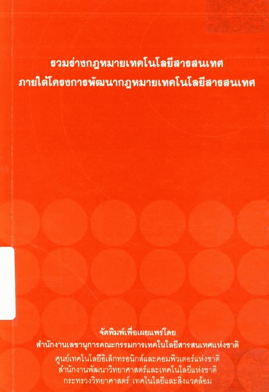 - เทคโนโลยีสารสนเทศ -- กฎหมายและระเบียบข้อบังคับร่างกฎหมายเทคโนโลยีสารสนเทศElectronic transactions bill -- Thailand