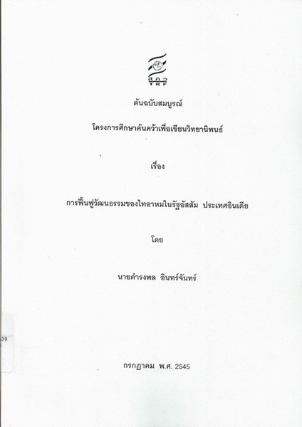 National Assembly Library of Thailand | Research & Theses collection | ว DS432.A39 ด493ก 2545 (เรียกดูชั้นหนังสือ(เปิดด้านล่าง)) | พร้อมให้บริการ | 3961151387 |
