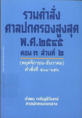 รวมคำสั่งศาลปกครองสูงสุด พ.ศ. 2545 ตอน 3 ส่วนที่ 2 (พฤศจิกายน-ธันวาคม) คำสั่งศาลปกครองสูงสุดที่ 501-656 / อำพน เจริญชีวินทร์.
