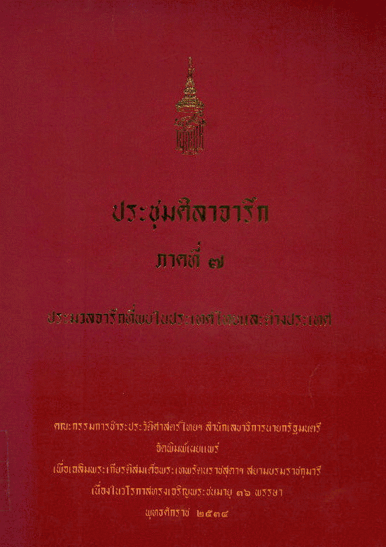 ประชุมศิลาจารึก ภาคที่ 7 : ประมวลจารึกที่พบในประเทศไทยและต่างประเทศ / วินัย พงศ์ศรีเพียร บรรณาธิการ.