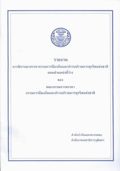 รายงานการพิจารณาสรรหากรรมการป้องกันและปราบปรามการทุจริตแห่งชาติแทนตำแหน่งที่ว่างของคณะกรรมการสรรหากรรมการป้องกันและปราบปรามการทุจริตแห่งชาติ / สำนักกำกับและตรวจสอบ สำนักงานเลขาธิการวุฒิสภา.