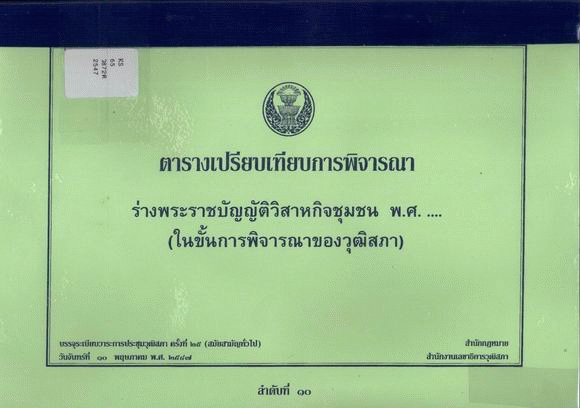 ตารางเปรียบเทียบการพิจารณาร่างพระราชบัญญัติวิสาหกิจชุมชน พ.ศ..... (ในขั้นการพิจารณาของวุฒิสภา)