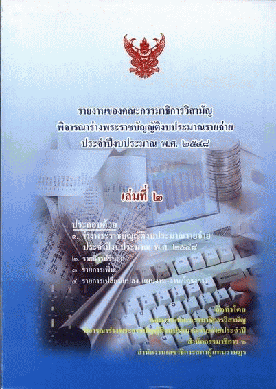 รายงานของคณะกรรมาธิการวิสามัญพิจารณาร่างพระราชบัญญัติงบประมาณรายจ่ายประจำปีงบประมาณ พ.ศ. 2548 เล่มที่ 2 ประกอบด้วย 1.ร่างพระราชบัญญัติงบประมาณรายจ่ายประจำปี พ.ศ. 2548 2.รายการปรับลด 3. รายการเพิ่ม 4.รายการเปลี่ยนแปลง แผนงาน-งาน/โครงการ / สำนักกรรมาธิการ 1 สำนักงานเลขาธิการสภาผู้แทนราษฎร.