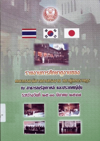 รายงานการศึกษาดูงานของคณะกรรมาธิการการแรงงาน สภาผู้แทนราษฎร ณ สาธารณรัฐเกาหลีและประเทศญี่ปุ่น ระหว่างวันที่ 25-30 มีนาคม 2547 / คณะกรรมาธิการการแรงงาน. สภาผู้แทนราษฎร.