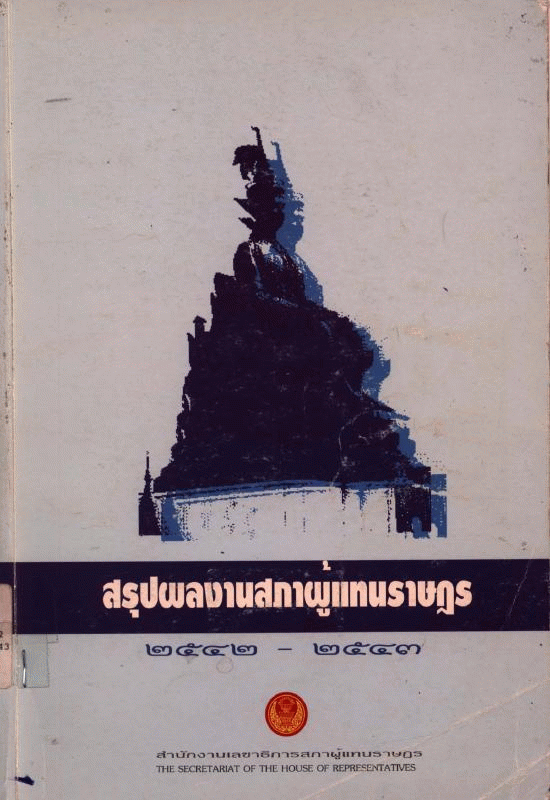 สรุปผลงานสภาผู้แทนราษฎร 2542-2543 / กองการประชาสัมพันธ์ สำนักงานเลขาธิการสภาผู้แทนราษฎร.