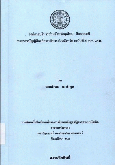 องค์การบริหารส่วนจังหวัดยุคใหม่ : ศึกษากรณีพระราชบัญญัติองค์การบริหารส่วนจังหวัด (ฉบับที่ 3) พ.ศ.2546