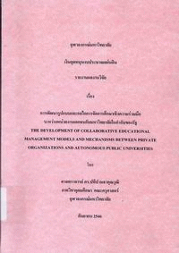 การพัฒนารูปแบบและกลไกการจัดการศึกษาเชิงความร่วมมือระหว่างหน่วยงานเอกชนกับมหาวิทยาลัยในกำกับของรัฐ : The development of collaborative educational management models and mechanisms between private organizations and autonomous public university