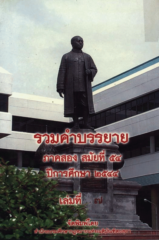 รวมคำบรรยาย ภาคสอง สมัยที่ 54 ปีการศึกษา 2544 เล่มที่ 7 / สำนักอบรมศึกษากฎหมายแห่งเนติบัณฑิตยสภา.