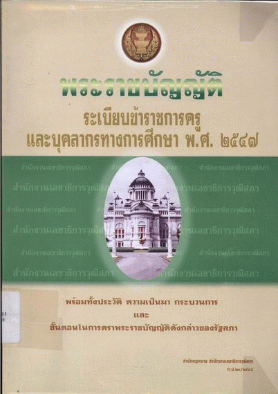 พระราชบัญญัติระเบียบข้าราชการครูและบุคลากรทางการศึกษา พ.ศ. 2547 : พร้อมทั้งประวัติ ความเป็นมา กระบวนการและขั้นตอนในการตราพระราชบัญญัติดังกล่าวของรัฐสภา