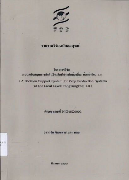 ระบบสนับสนุนการตัดสินใจผลิตพืชระดับท้องถิ่น : ท้องทุ่งไทย 1.0 = A decision support system for crop production systems at the local level : TongTungThai 1.0