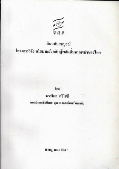 โครงการวิจัยนโยบายส่งกลับผู้พลัดถิ่นจากพม่าของไทย / พรพิมล ตรีโชติ