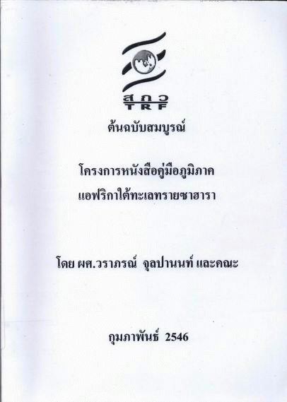 โครงการหนังสือคู่มือภูมิภาคแอฟริกาใต้ทะเลทรายซาฮารา / วราภรณ์ จุลปานนท์.