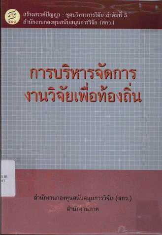 การบริหารจัดการงานวิจัยเพื่อท้องถิ่น / สำนักงานกองทุนสนับสนุนการวิจัย (สกว.) สำนักงานภาค.