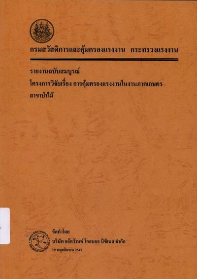 การคุ้มครองแรงงานในงานภาคเกษตร สาขาป่าไม้