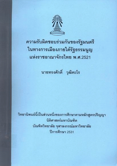 ความรับผิดชอบร่วมกันของรัฐมนตรีในทางการเมืองภายใต้รัฐธรรมนูญแห่งราชอาณาจักรไทย พ.ศ. 2521 / ทรงศักดิ์ วุฒิคะโร